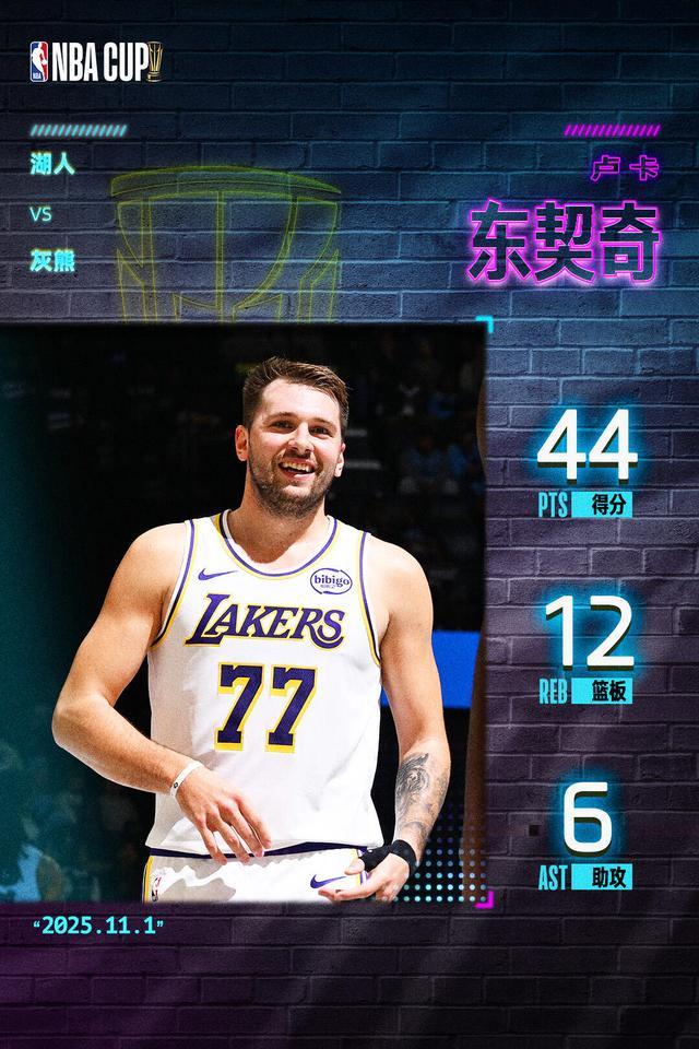 面对灰熊,复出的东契奇出战38分钟,27投14中,三分线外15投6中,罚篮13罚10中,拿下44分12篮板6助攻。