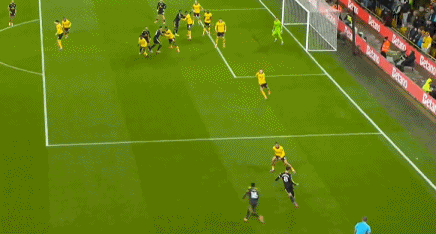 伤停补时阶段,克雷基奇右路传中,沃尔费倒三角回敲,贝勒加德飞身凌空铲射得手,狼队扳平比分,1-1!